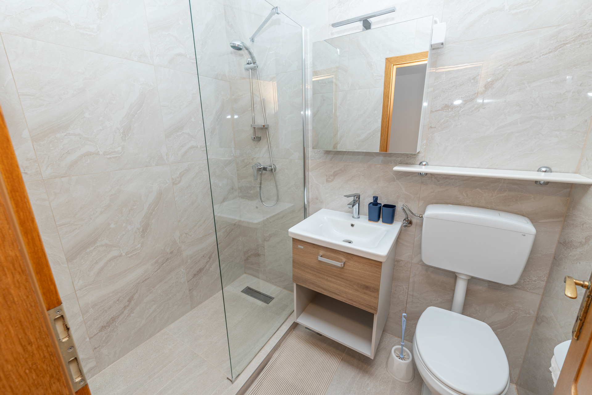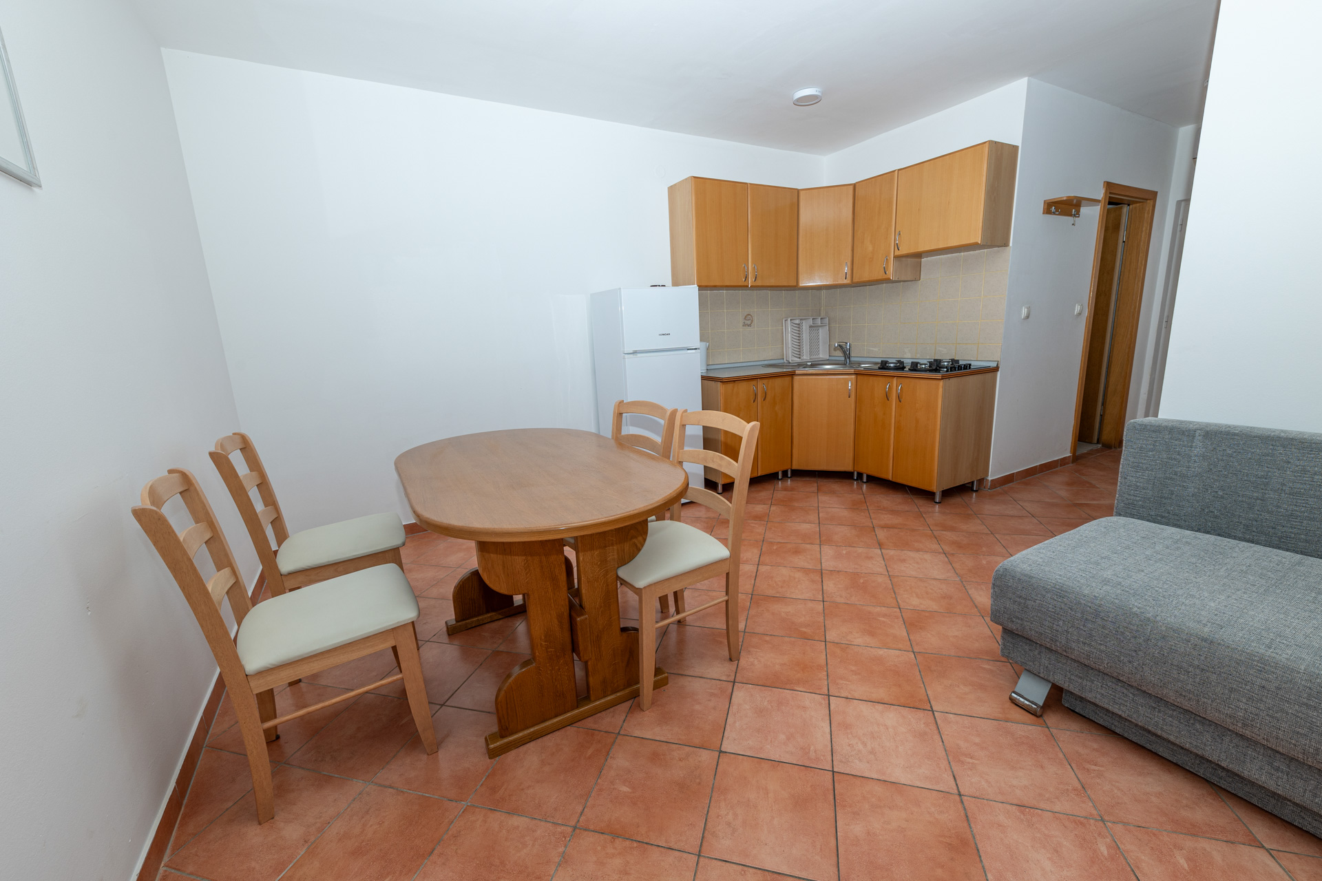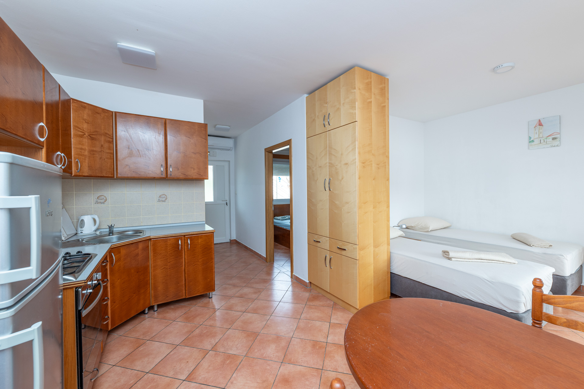 Apartmaji so v drugi vrsti od morja, tako da imate zagotovljeno zasebnost in mir, obenem pa čudovito plažo Jadro na dosegu nekaj korakov. Nekaj minut sprehoda v eno smer vas privede do divjih plaž za ljubitelje zasebnosti in divjine, korak v drugo smer pa vodi v središče večernega dogajanja za ljubitelje zabav in sproščenega dogajanja dalmatinskega duha.