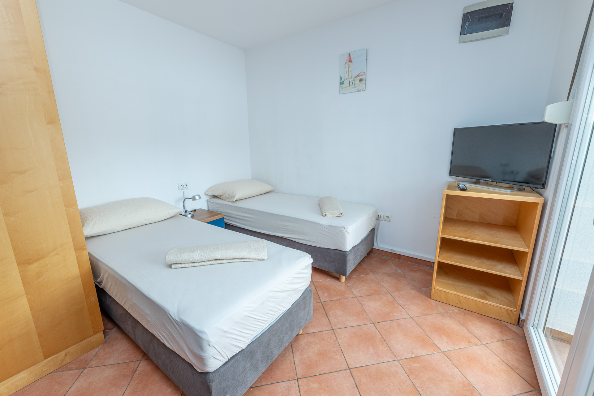 Sveža posteljnina vas bo pričakala, prav tako posoda in pribor za kuhanje. Vsak apartma ima TV, klimo, velik hladilnik z zamrzovalnikom, kombiniran štedilnik, parkirišče … In teraso z vrtno garnituro.